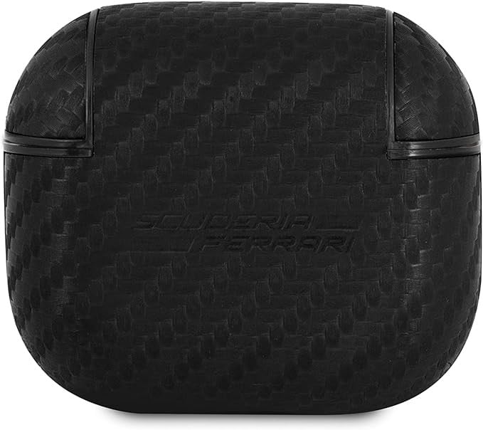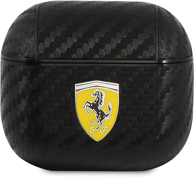 - حافظة حماية من البولي كربونات والبولي يوريثين والكربون مع شعار معدني لدرع العلامة التجارية باللون الاصفر لسماعات ايربودز 3 من فيراري - أسود
