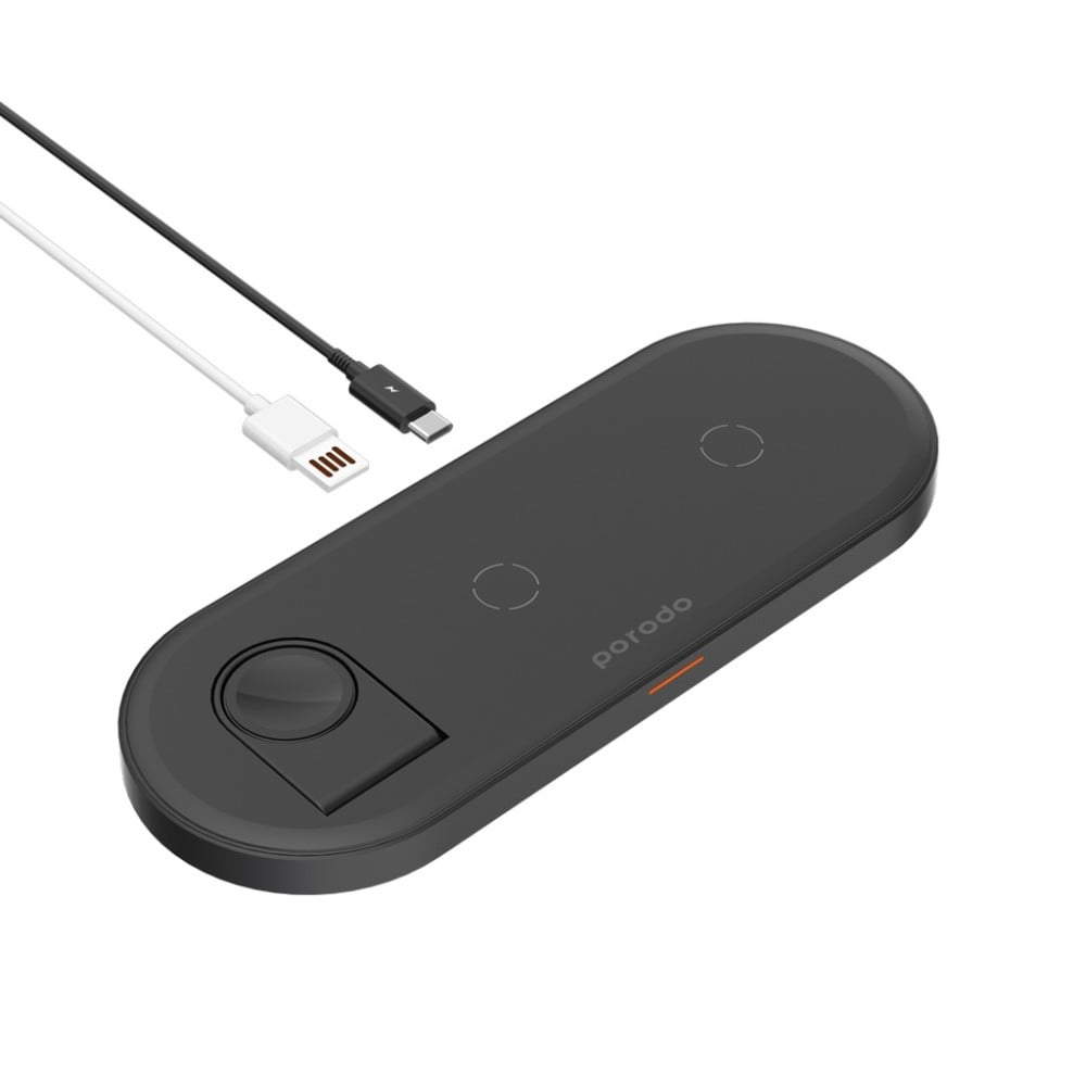 قاعدة شحن رفيعة 4 في 1 بقوة 7.5 /10 واط لايفون/ ساعة ابل واتش /ايربود من بورودو - باللون الاسود